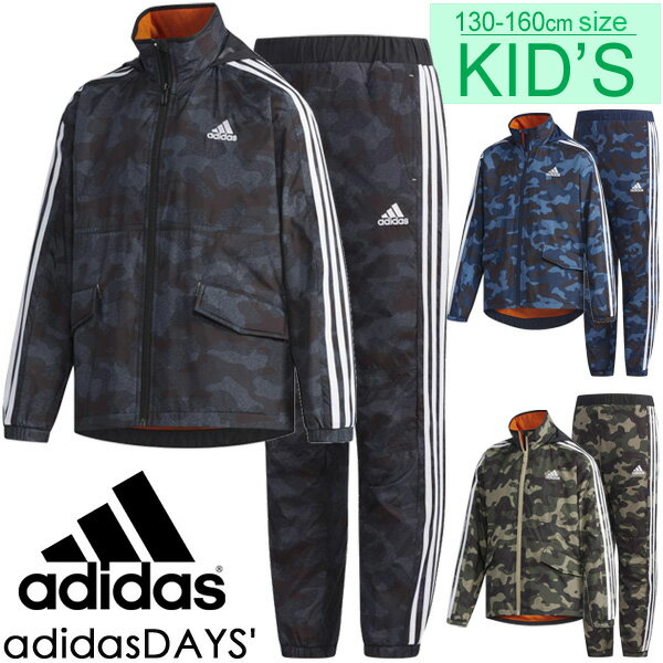 ウインドブレーカー ジャケット パンツ 上下セット キッズウェア ジュニア 男の子/adidas アディダス ボーイズ スポーツウェア/裏起毛 防寒 防風 迷彩 カモ柄 子供服 130-160cm ウインドブレイカー 上下組 運動 通園 通学 セットアップ/FKM21-FKM20