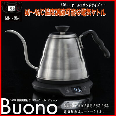 1℃単位の温度設定が60℃〜96℃の範囲で可能な、コーヒードリップの為の温度調整付き電気ケトルです。